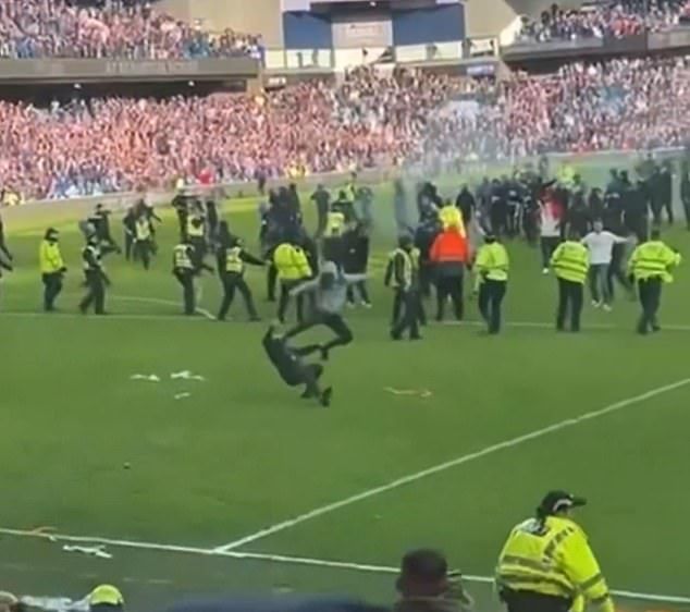 Scenes began to unfold that overshadowed everything on the pitch. Supporters made their way onto the field. Movement across the stands intensified. Tensions rose rapidly, spilling beyond the boundaries of the game.